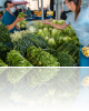 Sieviete zilā krekliņā pērk zaļos dārzeņus