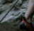 Klinšu kāpējs, kas kāpj pa stāvu Čehijas smilšakmens klinti