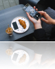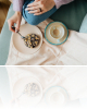 Cilvēka, kas tur paplāti, tuvplāna kadrs