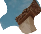 Draugu grupa pozē pie senām kolonnām