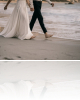 Vīrietis un sieviete, kas basām kājām staigā pa jūras krastu, sadevušies rokās